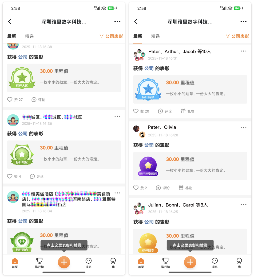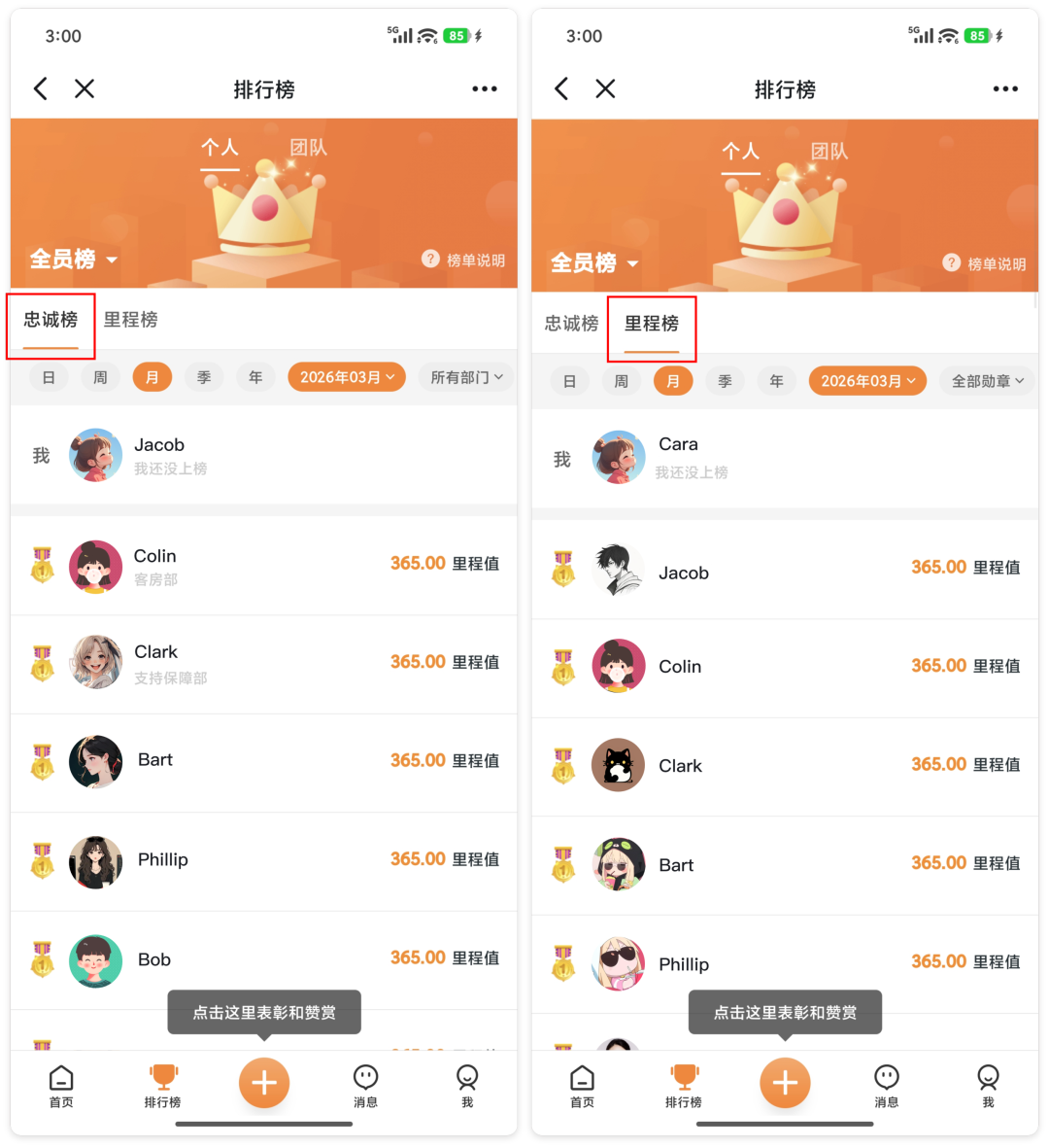 除了上述业绩榜单,还特别设立了忠诚榜与里程榜——前者以入职勋章致敬每一份长情的坚守,后者用累计里程值记录每一次奋斗的足迹。